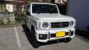 最近はやりの軽トラ。県外の専門店でオーダーメイド作品です。リフトアップにロールバー、更にバンパーガードなどわかるところだけでも投資してるなって感じ。室内は広く軽トラの域を超えてます。軽トラ好きを自称するだけあって素晴らしい仕上がりになっていました。タイヤは静粛性を求めたのが軟弱? 駐車場の除雪用に自分も古い軽トラを購入したが、なんとパワステ、エアコン付き。音も静かで農耕用ではないのか1速発進。どんだけ時代遅れの軽トラだったのか。